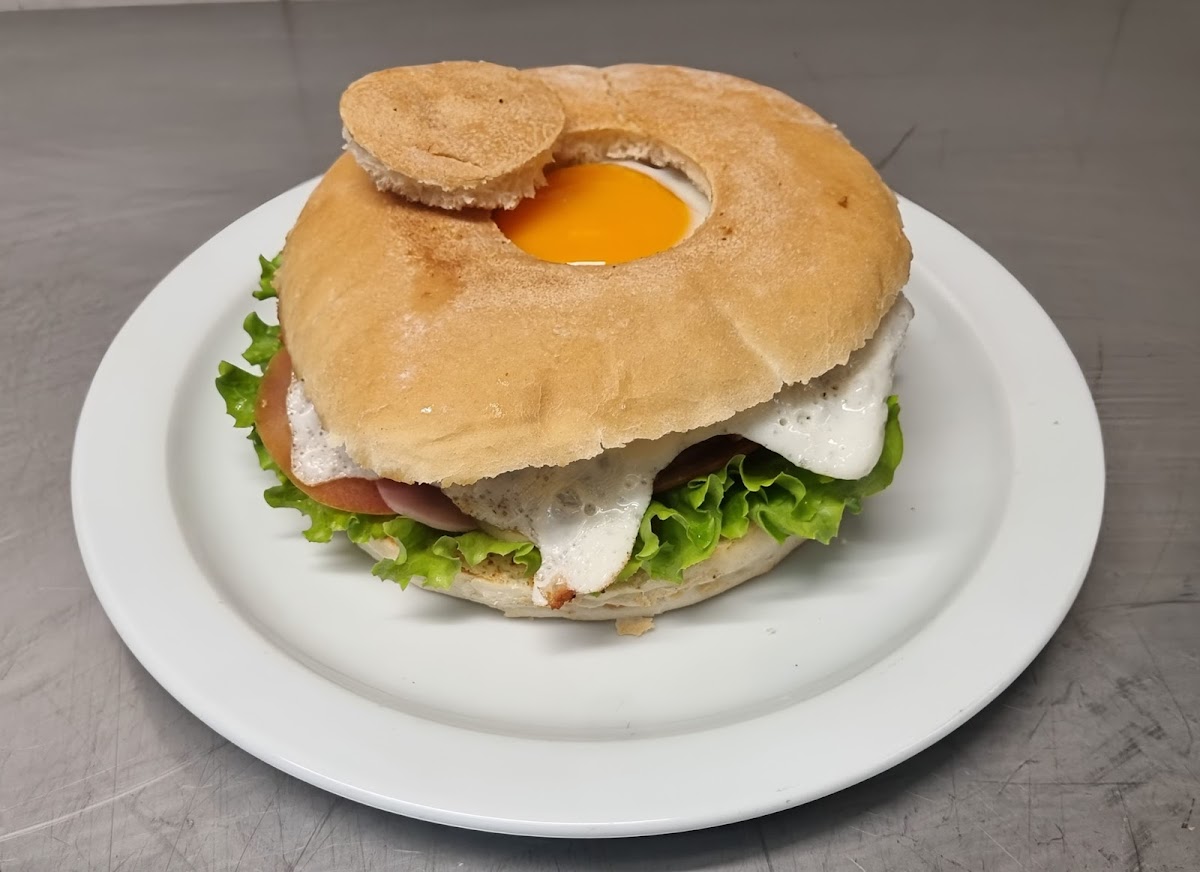 La comida es sándwich, bocadillos, hamburguesas, pero está todo rico, el servicio no puede ser mejor, buen sitio para ver deportes, tiene tv dentro y en las terrazas